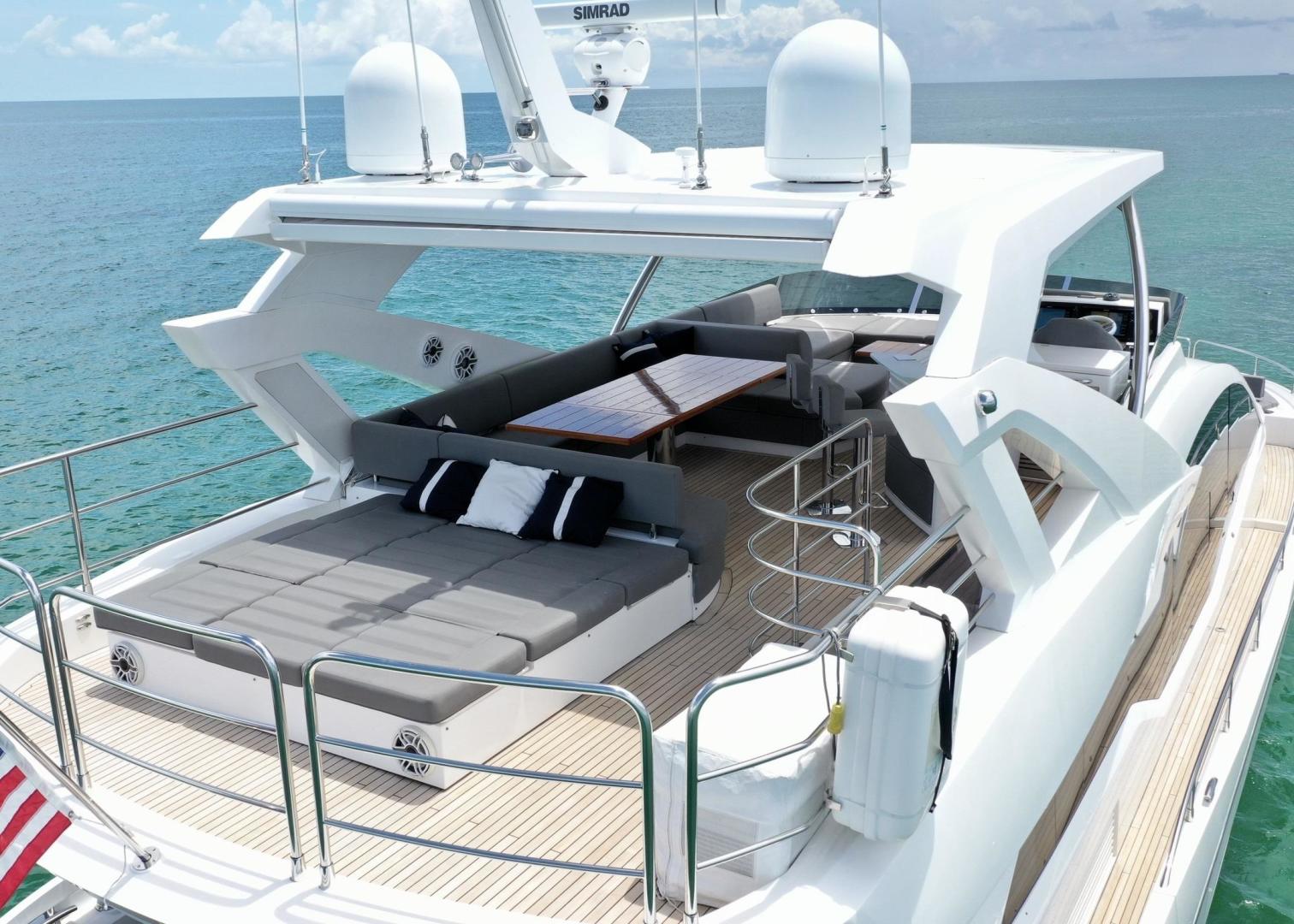 Reserve your yacht charter aboard the breathtaking 78′ Sunseeker, “Do It Anyway,” now available at the exclusive in Key Largo, Florida. This extraordinary vessel sets the standard for modern luxury—combining performance, style, and space in one remarkable package. Wrapped in sleek, glass-lined architecture, the yacht offers stunning 360-degree views, flooding the interior with natural light and creating a serene, open atmosphere. Inside, you’ll find a sophisticated satin silver oak finish, accented by high-gloss wenge, delivering a warm, refined ambiance throughout. Powered by twin MAN V12 engines at 1,550 HP each, “Do It Anyway” offers not only elegance but also exhilarating performance on the water. The expansive foredeck invites guests to relax on double sunpads or lounge seating, all with panoramic views from the Portuguese bow.