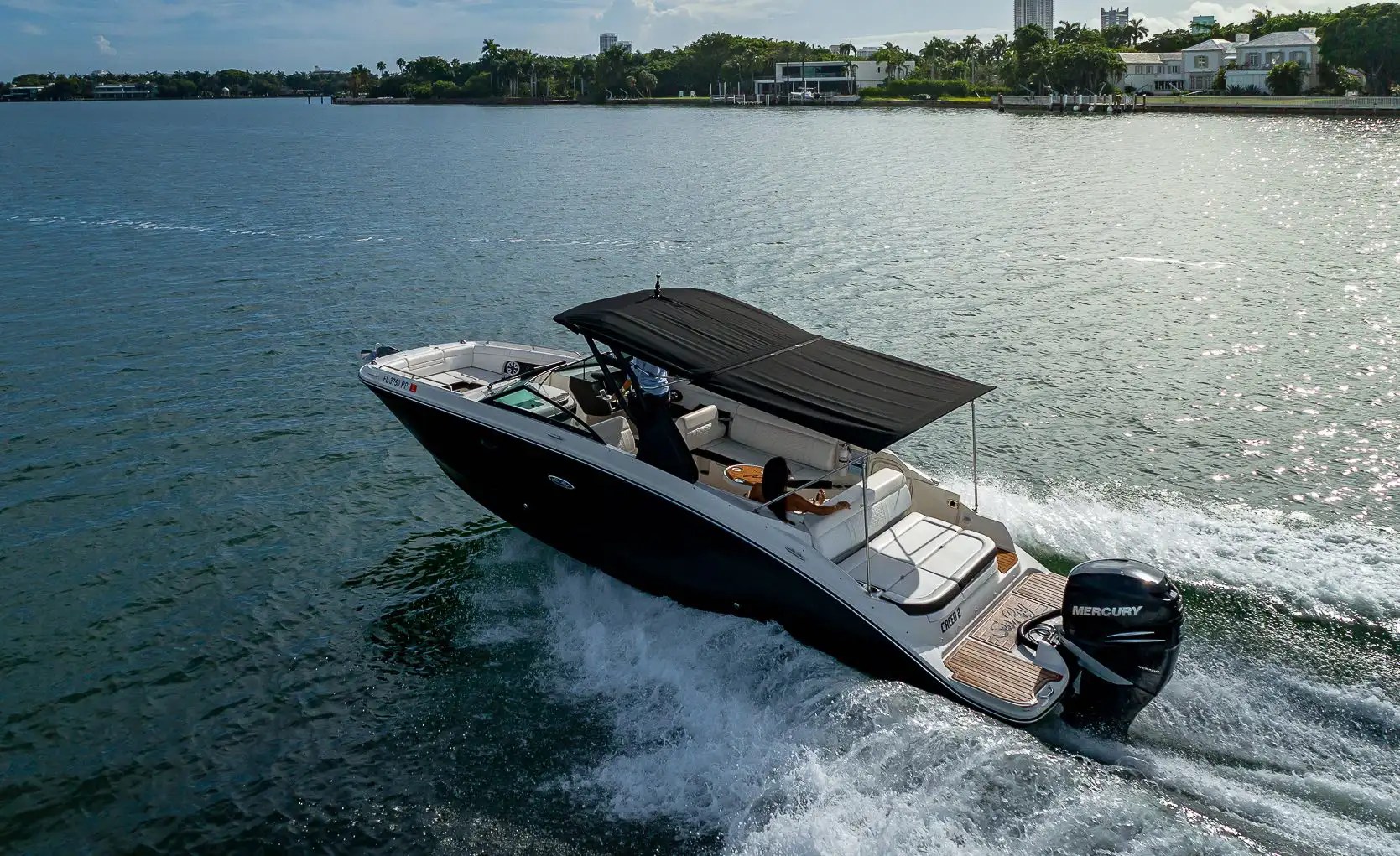 With a wide beam, oversized bow seating and a swim platform tailored for sandbar fun, this Sea Ray keeps the vibe consistent from boarding to anchor. The open cockpit invites conversation, while Bluetooth sound and abundant storage make it effortless to bring your favorite drinks, snacks and music. Ideal for both laid-back lounging and energetic group outings, this size class remains one of the most requested among Miami Beach boat rentals. It’s the reliable choice when you want something stylish, fun and ready for adventure.