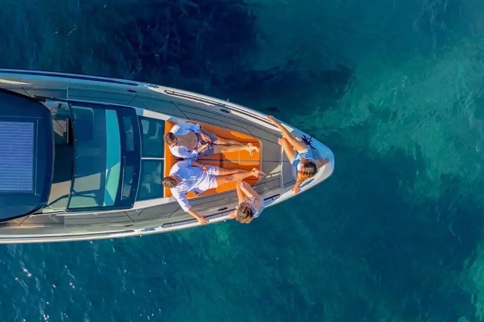 The 32′ Saxdor mixes elegant lines and high performance with a social cockpit and bow sun-pad—ideal for both relaxing and entertaining. With features tailored for socializing on the water, integrated seating, Bluetooth sound and easy access to the swim platform keep the energy flowing. Guests can stretch out, dive in and lounge in style while the boat delivers a smooth ride through the bay. Explore our full range of Miami Beach boat rentals to see why this size and layout remain favorites among groups seeking a stylish, modern charter.