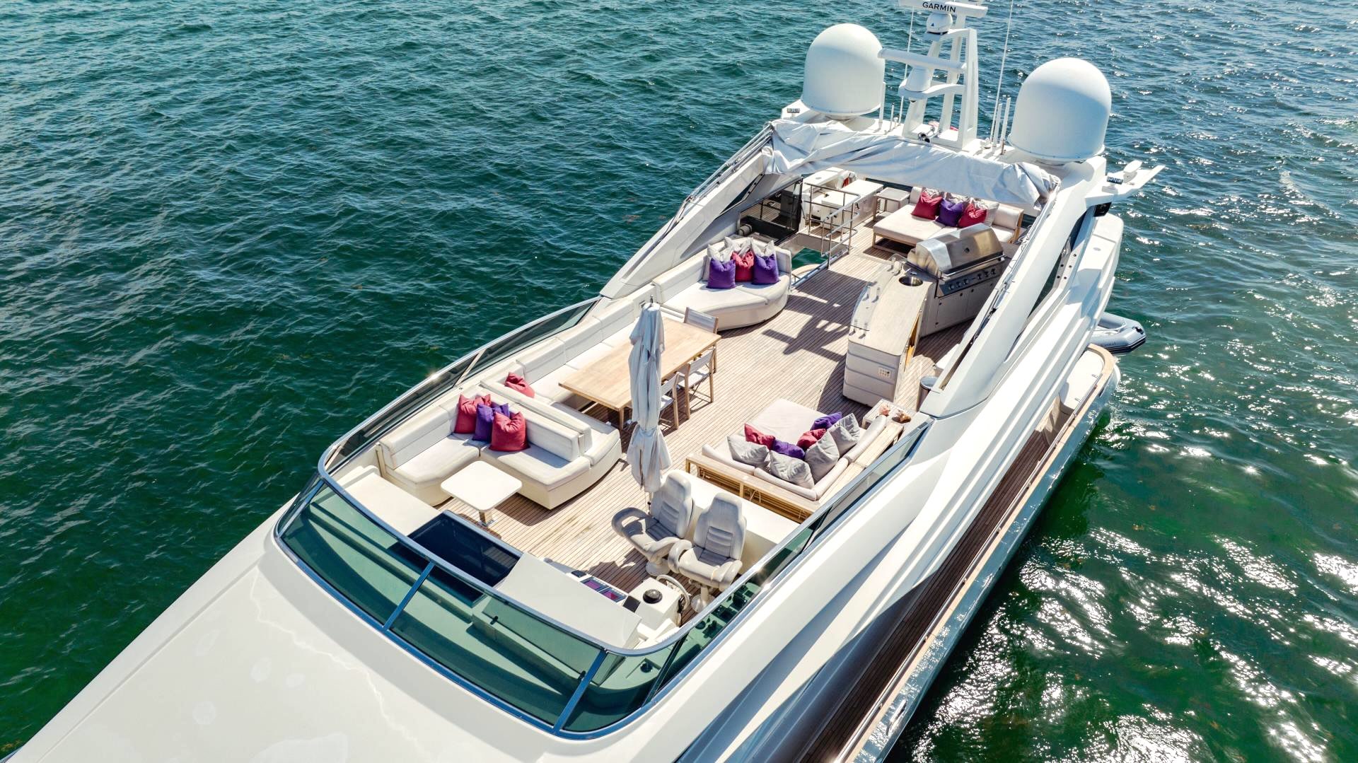 Charter this incredibly luxurious yacht rental at Miami Beach Marina, in Miami Beach, Florida. Our 100′ Dominator is one of the largest luxury yacht rentals in our fleet. “Casual” exemplifies all that the Dominator brand of luxury yachts has to offer, featuring Italian styling, design and state-of-the-art construction techniques. This rental yacht comes equipped with Zero-Speed Stabilizers, ensuring maximum stability at anchor. You’ll experience incredibly comfortable outside spaces, such as the shaded seating area with tables on the bow, with a jacuzzi right on the deck! The flybridge is very large and spacious for a yacht her size, with a Bimini top, a large dining table with chairs, sofa and additional lounging space, as well as a XL BBQ grill & bar. During overnight stays, four spacious staterooms are thoughtfully spread out with vision for maximum room, access, comfort and privacy. You can rest easy. Our crew of experts will take the work out of your luxury yacht rental experience!
