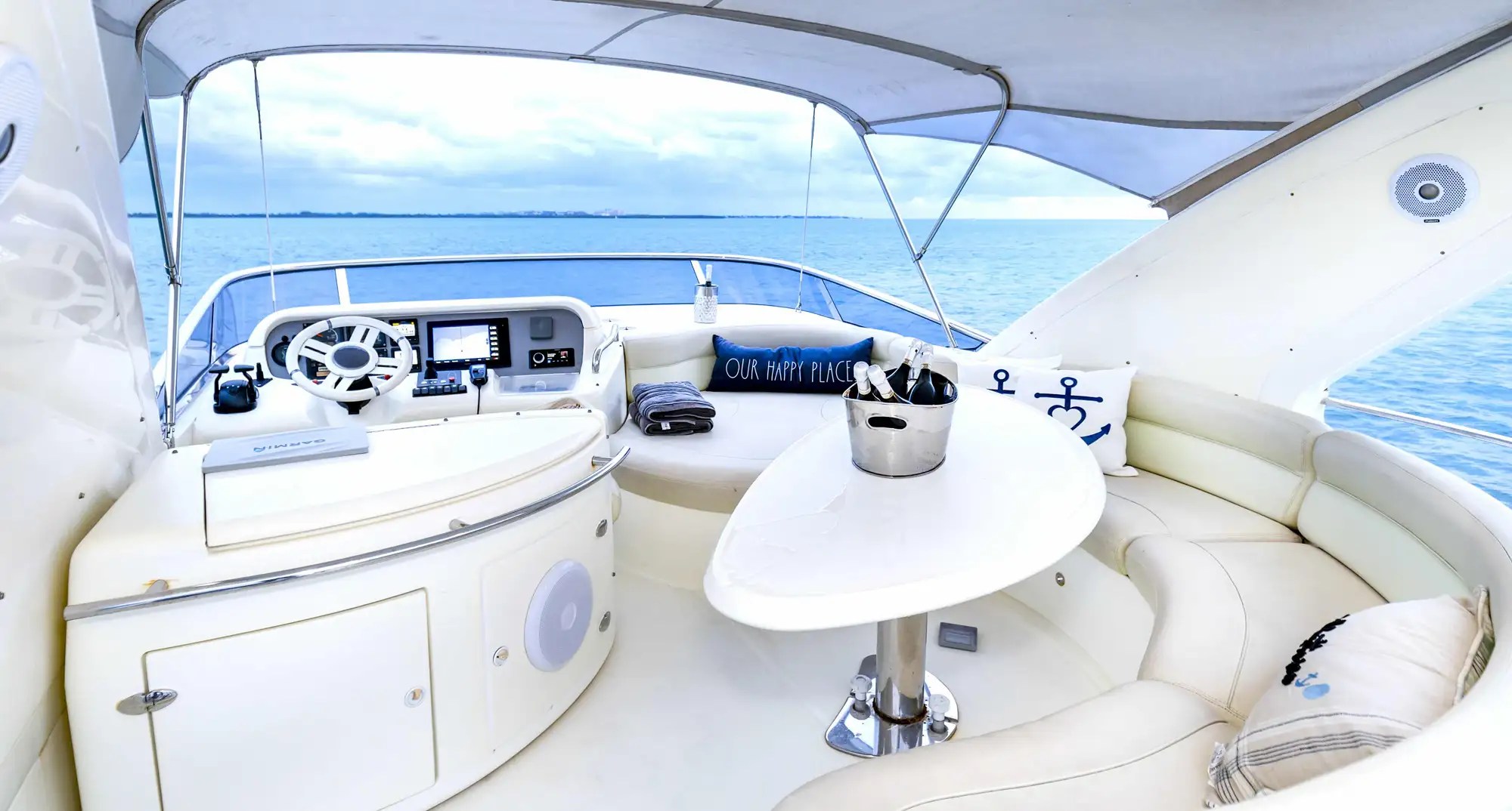 Step aboard this sleek 57โฒ Azimut yacht charter and embrace the luxury of Italian craftsmanship fused with lively Miami Beach energy. Featuring expansive sun pads, a modern flybridge and panoramic views of Biscayne Bay, this yacht creates an unforgettable setting for celebrations, proposals or relaxed escapes. Sip a chilled glass of bubbly while your professional crew handles every detail with polished precision. Whether youโre marking a milestone or simply enjoying an elevated day on the water, the 57โฒ Azimut delivers a premium yachting experience that stays with you long after docking.