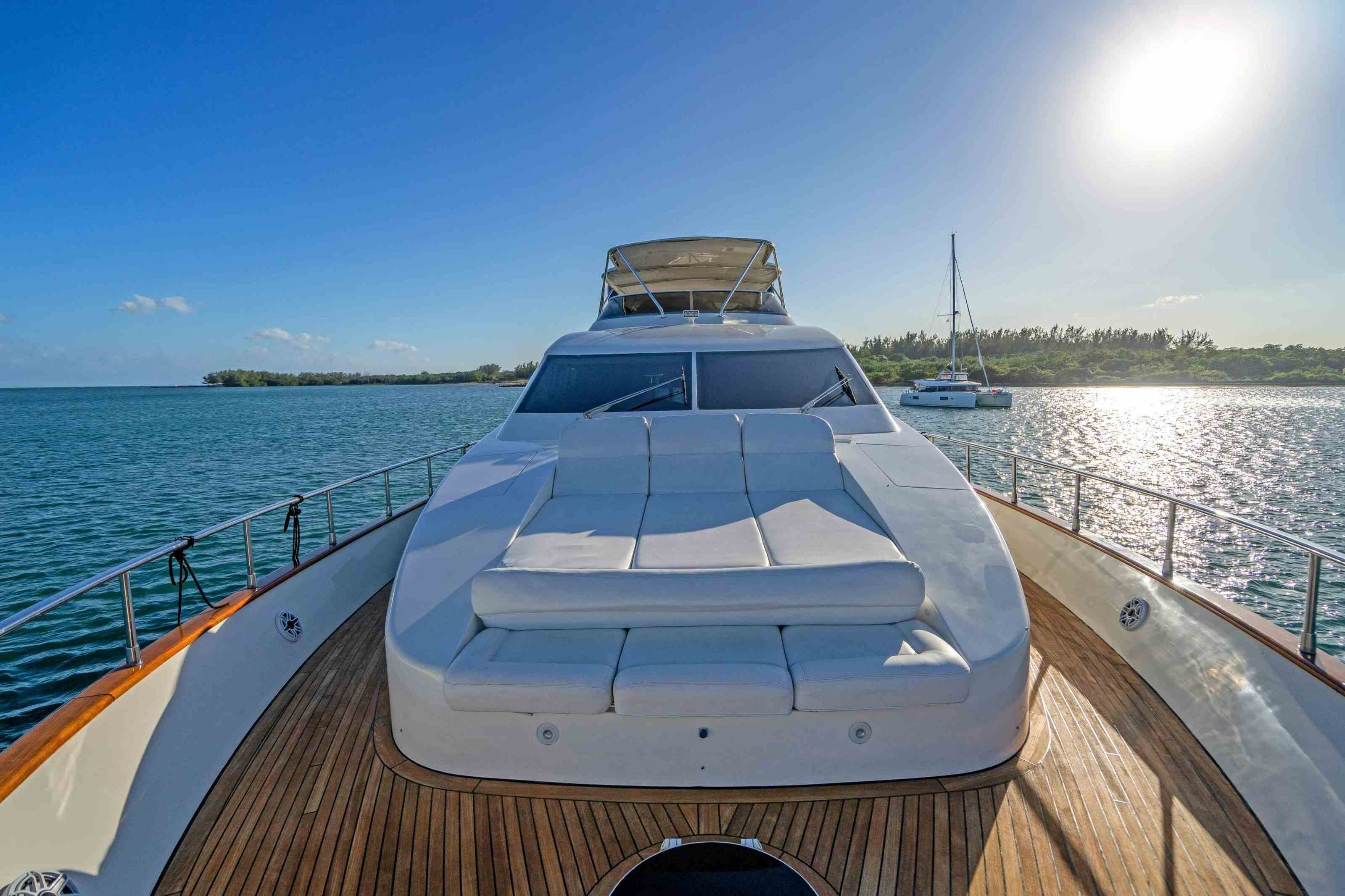 One of the best parts of this Miami Beach yacht rental is the flybridge, a big open area on the top deck where you can enjoy the amazing 36 degree views. This luxury yacht charter is perfect for relaxing in the sun, having a meal outdoors or just spending time with friends. Our 90′ Azimut brings together relaxation and adventure in the most luxurious way possible. Whether you’re planning a birthday bash, engagement celebration or just a much-needed escape, the 90′ Azimut turns the ordinary into the unforgettable. Imagine spending a day on the water with your friends and family for a birthday party, relaxing in style and comfort while exploring amazing places during a corporate event. This luxury yacht is like a floating dream house where you can enjoy the best of everything. Welcome aboard!