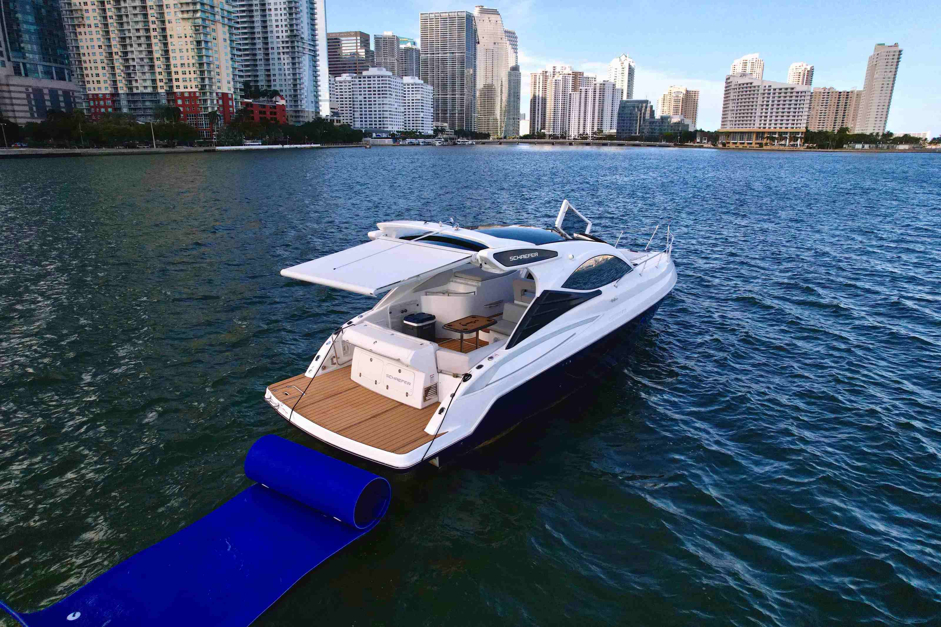 Reserve this nearly new, modern and sporty boat rental in Miami, Florida. Our 40′ Schaefer is a model year 2023, with capacity to host up to 13 guests. Start your charter with a cruise down the Miami River aboard this state-of-the-art boat for charters in Miami and beyond. Our boat for rent offers the perfect combination of modern design, performance and comfort, ensuring a first-class experience on the waters of Key Biscayne. Entertain guests in her spacious and well-appointed interior featuring high-end finishes and modern amenities. The expansive deck of the charter boat in Miami is ideal for socializing, sunbathing and enjoying the breathtaking views of the magic city.