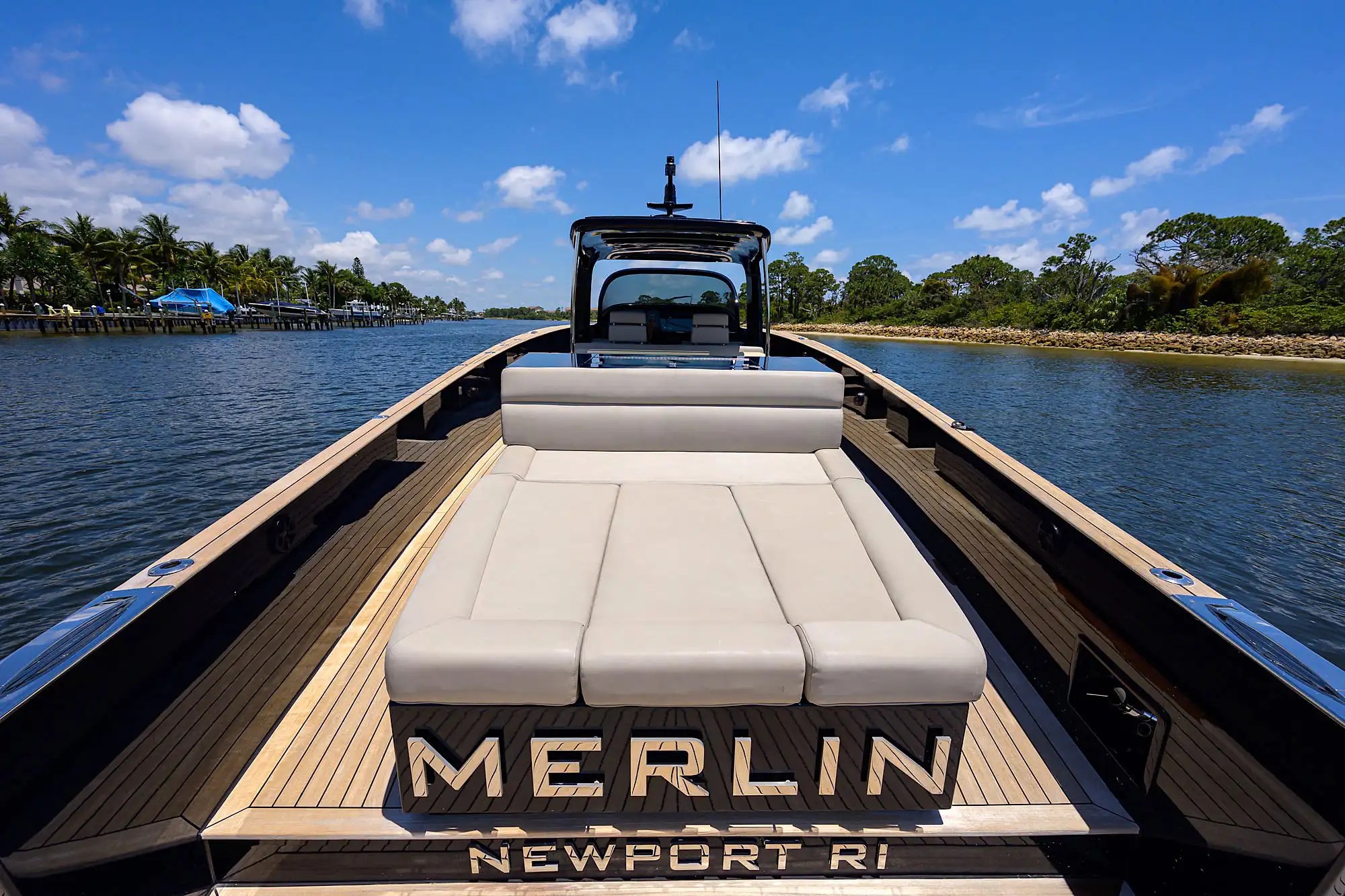 The 45′ Alen combines sleek lines, spacious decks, and thoughtful amenities designed for all-day enjoyment. Lounge on the bow sunpads, relax in the cockpit lounge, or enjoy lunch on the aft deck surrounded by panoramic water views. The swim platform makes it easy to dive in for a swim, while the Bluetooth sound system sets the perfect soundtrack. Inside, the air-conditioned cabin features a compact galley, dining area, and private restroom. Every inch of this Alen boat rental in Miami reflects modern craftsmanship and refined comfort. Explore more premium vessels in our Miami boat rentals collection.