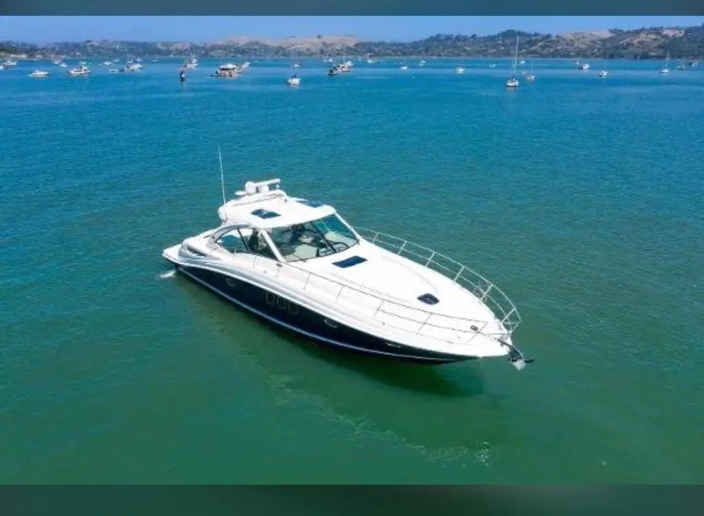 The 50′ SeaRay is built for both performance and pleasure. Enjoy the spacious flybridge deck with 360° views, relax on the bow sunpads, or dine in comfort on the aft deck. The air-conditioned saloon offers plush seating, a gourmet galley, and large windows that fill the interior with natural light. Below deck, two staterooms with ensuite baths provide overnight comfort. Every inch of this SeaRay yacht rental in Miami showcases craftsmanship, quality, and refined design. Explore more premium options in our Miami yacht charters collection.