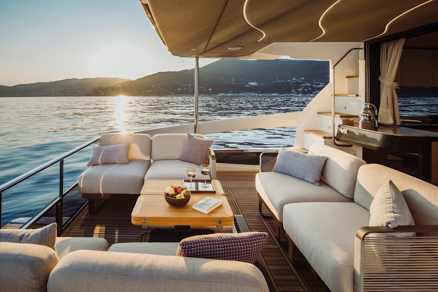 Check out this elegant yacht rental in Miami, Florida. Our 52′ Absolute is one of the most interesting Miami yacht charters in her class. “Sip Sip” is synonymous with progress and innovation, a combination that allows the merging harmonious design, with a new concept of livability that is unrivaled on yachts of this size. This rental yacht offers a stunning flybridge, a luxurious platform for enjoying the sea from a lofty viewpoint. The interior of the main deck features the finest woods, high-end furniture, and a modern, integrated style of engineering. Everything aboard this yacht for charters in Miami has extremely refined artisanal details. The master suite has plenty of walk-around room, high ceilings, beautiful furniture, a large sofa, lots of storage space and side windows for amazing morning sunrises.