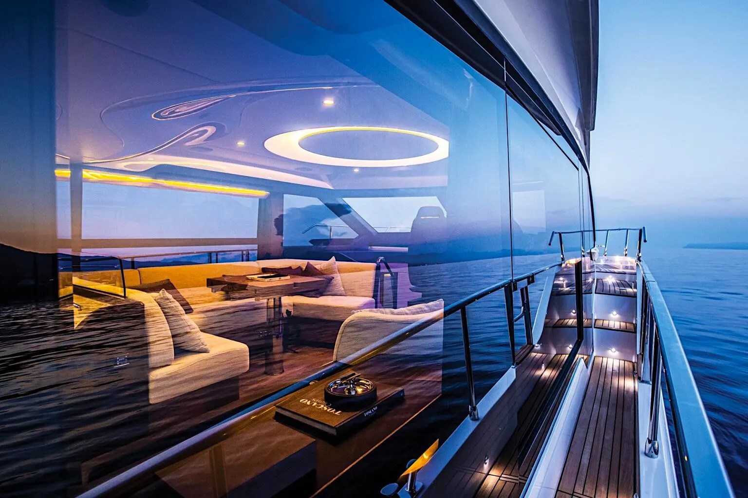 The 52โฒ Absolute combines modern Italian styling with an airy, open layout ideal for Miamiโs year-round sunshine. Lounge on the flybridge deck with panoramic views, sunbathe on the bow cushions, or dine alfresco on the aft deck. The saloon features wrap-around windows, a fully equipped galley, and premium seating for up to 12 guests. Below deck, three staterooms with ensuite baths ensure comfort and privacy. Every inch of this Absolute yacht rental in Miami exudes refinement and elegance. Discover more luxury yachts in our Miami yacht charters collection.