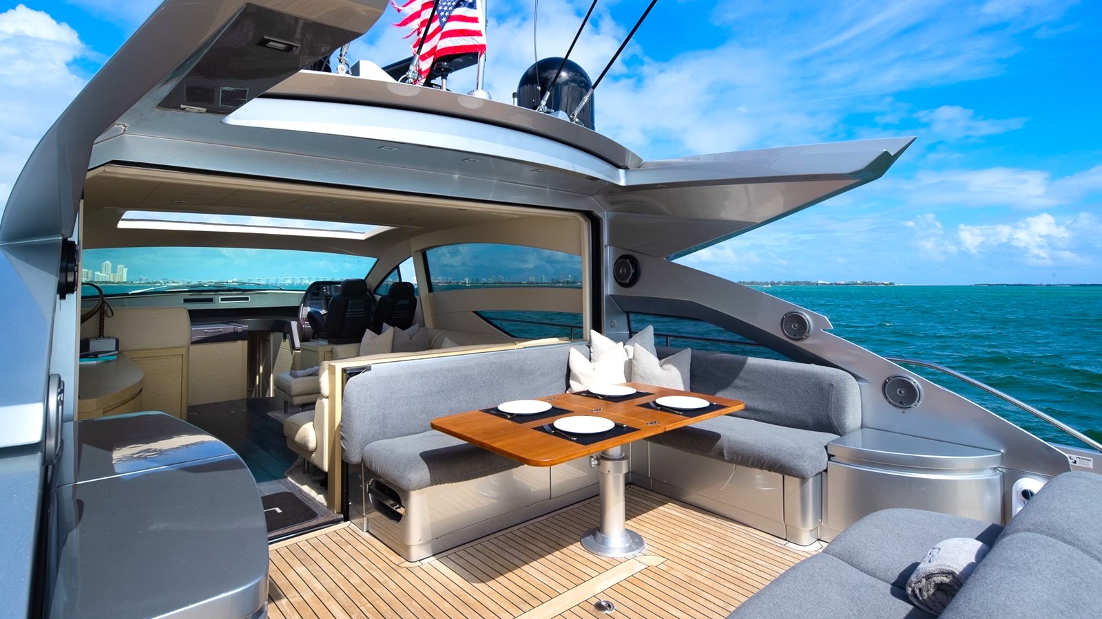 Check out this gorgeous yacht rental at Venetian Marina & Yacht Club in Miami, Florida. Our 65′ Pershing is wildly popular for Day Charters and Term Charters. “Loki” is a modern marvel. Her lines are chic and her body is simply enticing. This yacht rental is the ideal size for a wide variety of itineraries. She has a shallow draft, which is especially nice for charters to the Bahamas and Florida Keys. This charter yacht sleeps 6 guests in 3 staterooms for overnight experiences. A licensed Captain and professional Mate/Steward(ess) will be hosting your luxury charter experience.