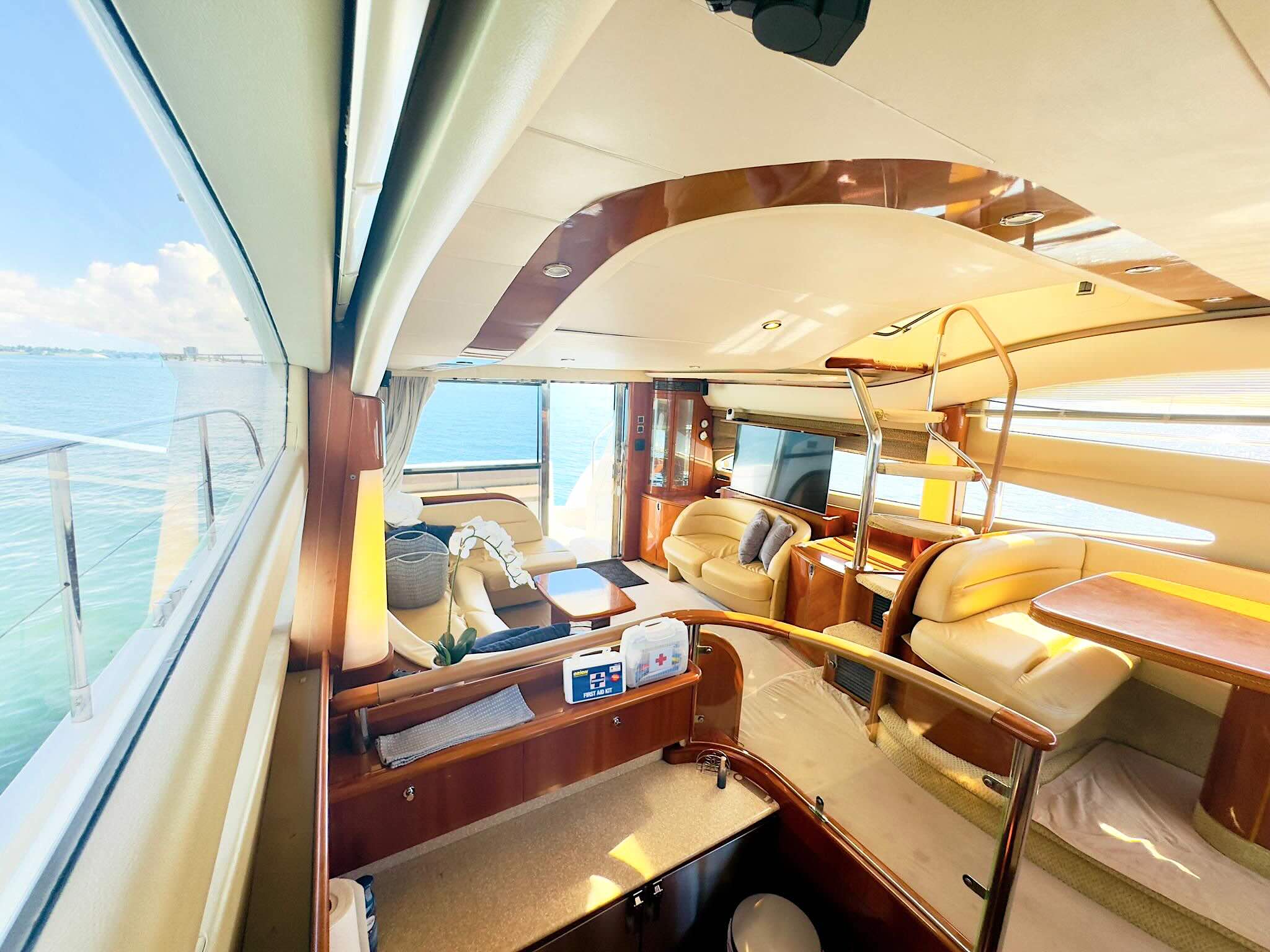 This Miami yacht charter masterfully combines luxury, performance and practicality. Her design ensures comfortable cruising, with ample accommodations and robust engine power. Our rental yacht measures 65 feet in length, providing a spacious and stable platform for various sea conditions. This yacht is capable of impressive speeds, making it perfect for quick trips to distant anchorage locations or swift cruising along the coast. Enjoy Miami like never before with a private yacht charter for up to 13 people. Whether you’re looking for relaxation, adventure or a party vibe, we’ve got you covered. Our yacht charter experts are proud to deliver exceptional service and unforgettable experiences.