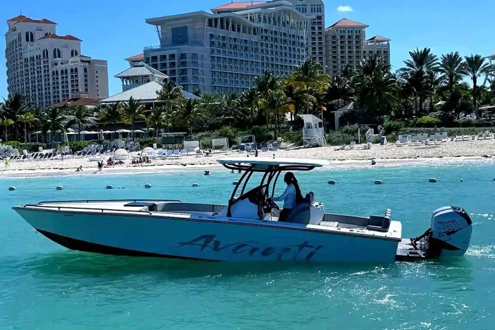 Welcome aboard this 36โฒ Avanti boat rental and experience one of the most exciting Nassau private boat charters in the Bahamas. Designed for speed, comfort, and celebration, this captained party boat welcomes up to 14 guests for unforgettable island hopping, snorkeling adventures, and high-energy boat charters across turquoise waters. Whether youโre planning a birthday boat rental, bachelorette party, sunset cruise, or bar-hopping charter, this Nassau boat delivers performance and style. With triple outboards, a sleek center-console layout, and spacious open deck seating, this private boat charter transforms an ordinary day into a thrilling Bahamas boat experience.