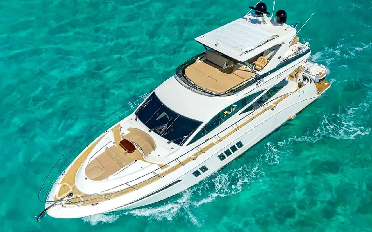 The 65′ SeaRay redefines modern yachting with its spacious decks and open layout. Lounge on the forward sunpads, enjoy a drink in the shaded cockpit, or take in panoramic ocean views from the flybridge. Inside, the bright saloon features wrap-around windows, a fully equipped galley, and three guest staterooms with ensuite bathrooms. The combination of advanced technology, refined design, and smooth performance makes this luxury SeaRay yacht ideal for cruising around Paradise Island or island-hopping through the Exumas. Discover more stunning vessels in our full collection of Nassau yacht charters.