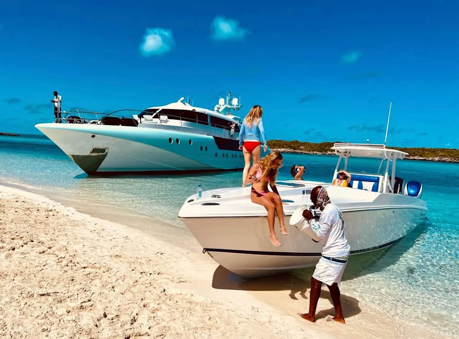 Just sit back, relax and make the most of your memorable day in the crystal-clear waters of the Bahamas. This boat rental will cruise to picturesque beaches, bays and coves of this tropical paradise. Boating has never been this much fun! Imagine being surrounded by marine wildlife, the likes of which you have never seen before. Swim with the pigs! Choose from five tour packages. Spend anywhere from 4-8 hours at Rose Island. Other itinerary options include a full day in the Exumas Cays or Pink Sand Beach. Take a look at the ITINERARY section below for details. Book this Nassau boat rental now. All-Inclusive prices. No Hidden Fees!