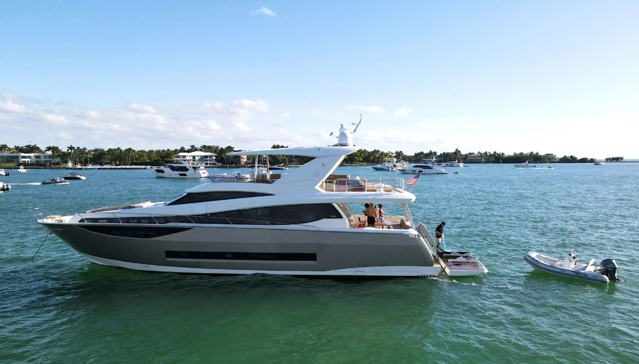 Cruise Florida’s iconic Gold Coast in world-class style aboard this luxurious 75′ Prestige yacht charter, departing from the prestigious Palm Harbor Marina in Palm Beach. Combining elegant European design with innovative performance, this Palm Beach yacht rental is ideal for family getaways, romantic escapes, or private celebrations. Glide past Worth Avenue, anchor near Peanut Island, or enjoy a sunset cruise over turquoise waters. Availability is limited—book early to experience this stunning Prestige yacht on the waters of Palm Beach.