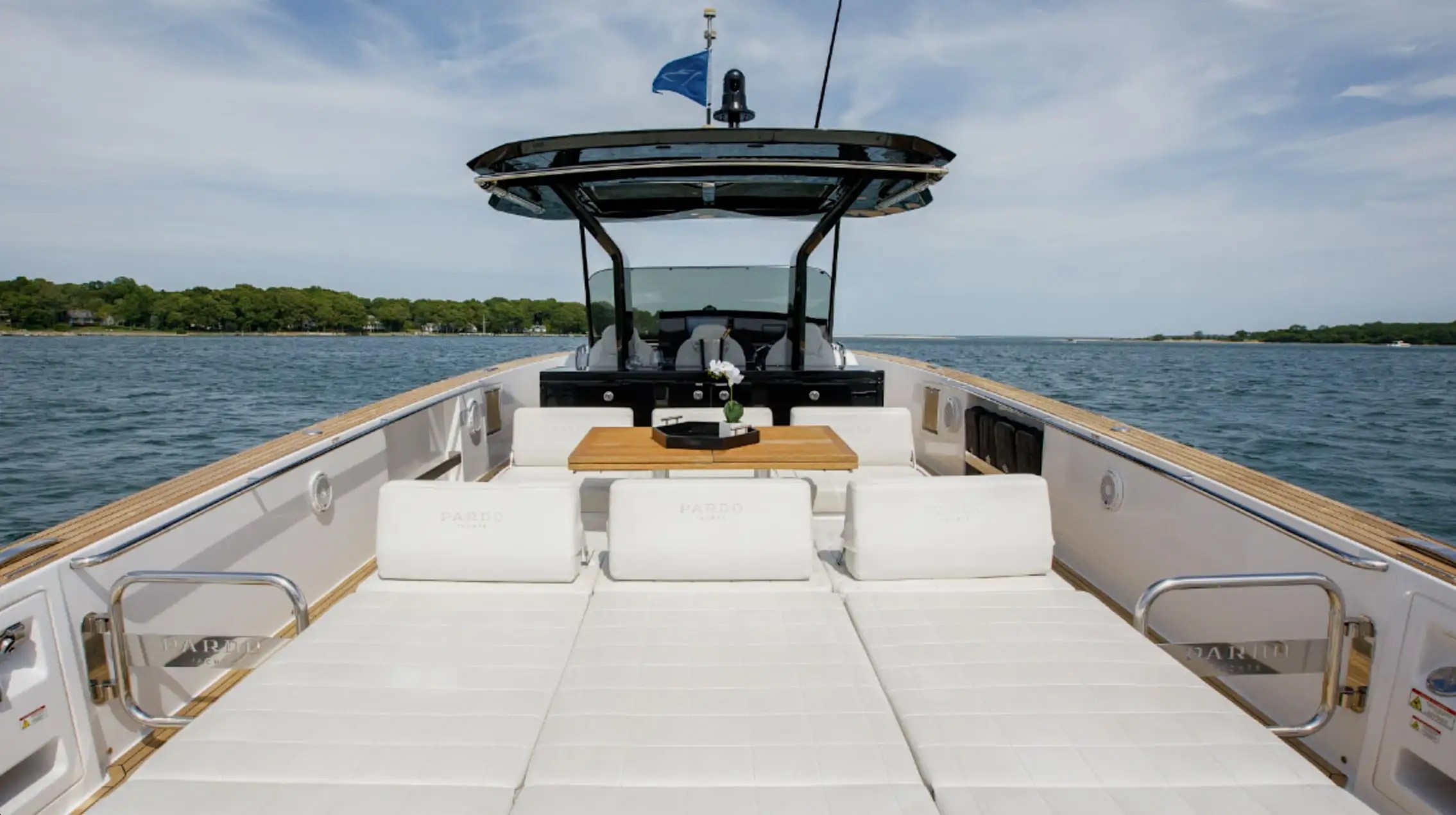 Elevate your 2021 Pardo experience with additional water toy packages. This boat features a large bow sundeck, large aft sundeck, elegant Italian design, large bathroom and shower, front and rear expandable sunshades, outdoor dining table for eight guests and a large submersible swim platform. You’ll need to bring towels, food, drinks, plates, utensils and glasses. Bring any food or drinks you want except Red drinks. They can stain just about any type of surface. It’s risky to have them on a moving boat. We have the following water toys available upon request: floating island, snorkeling gear, fishing gear, stand up paddle board, 4 person stand up paddle board, hydro-foil hoverboard, E-Surfboard and a JetSki. Let us know how you want to shape your next luxury charter experience and we’ll make it happen.