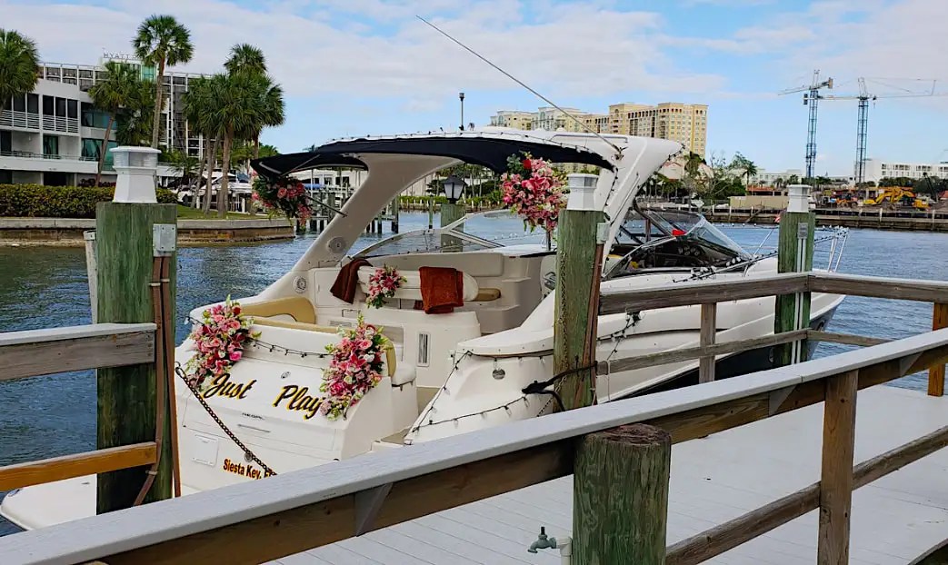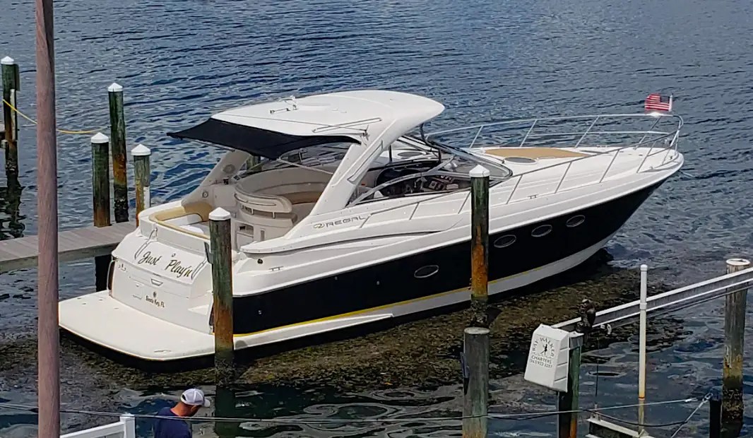 Book your next boat rental at Nora Patterson Bay Island Park in Sarasota, Florida. Our 40′ Regal has a sleek design. “Just Play’n” offers comfortable outdoor seating, forward lounge chairs on the bow for lounging or appreciating the good view the sea offers. It also has a swim platform. It is a perfectly affordable boat rental. A list of qualified captains can be provided upon request. The boat owner recommends having the chief captain at the helm, but you can request the full list. Our expert crew will take the work out of your boating experience.
