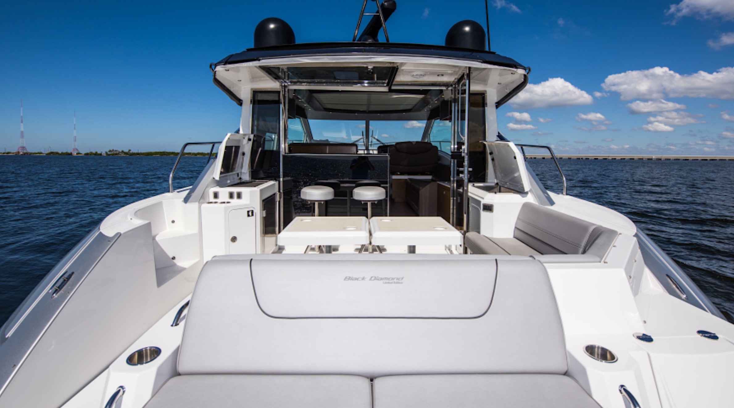 The lower deck layout of this Sarasota boat rental has a full-service galley to port, an L-shaped sofa with adjustable table to starboard, a full-beam master stateroom aft and a VIP stateroom forward. Both offer queen-size beds with ocean views and ensuite bathrooms, with showers. You’ll get awesome views of the outside from a large six-foot sunroof, huge side windows to port and starboard and triple sliding glass doors aft. The main deck has more natural light than any other boat in her class. The walk-through windshield and spacious engine room add to the appeal boat for rent. You’ll be able to enjoy all your favorite tunes on our bluetooth stereo. An onboard ice chest will keep your drinks nice and cold. This is the ideal day charter boat for you. Welcome aboard!