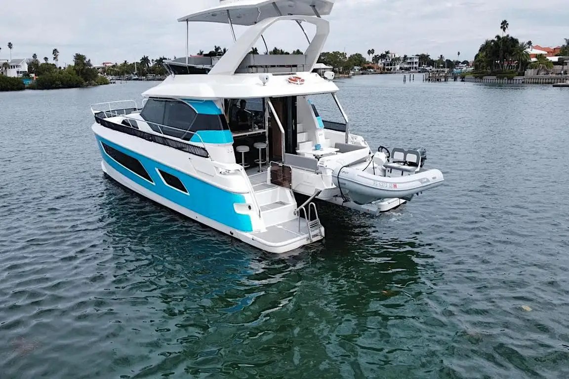 Set sail along Florida’s stunning Gulf Coast aboard this versatile and luxurious 50′ Aquila yacht charter, departing from the exclusive Maximo Marina in St. Petersburg. Known for its stability, space, and modern design, this St. Petersburg yacht rental is ideal for family outings, romantic getaways, or social events on the water. Cruise past St. Pete Beach, explore Egmont Key, or anchor for a sunset celebration in the bay. Availability is limited—reserve your private Aquila yacht charter today for an unforgettable experience.