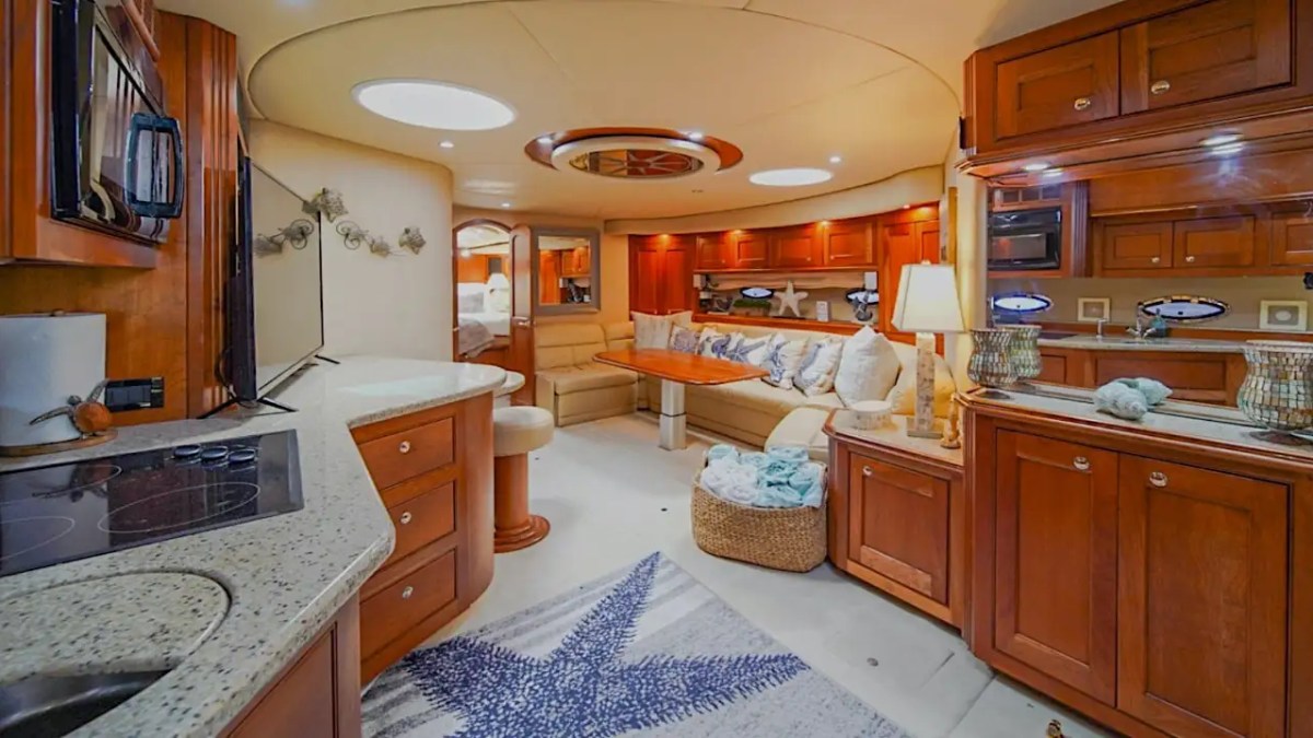 The 60โฒ Cruisers offers a perfect blend of performance and relaxation. Lounge on the flybridge deck for panoramic views, unwind on the bow sunpads, or enjoy dining on the aft deck while cruising along the Intracoastal. Inside, the saloon features modern furnishings, wrap-around windows, and a fully equipped galley. Below deck, two spacious staterooms offer restful accommodations. Every inch of this Cruisers yacht rental in Sunny Isles combines sleek style with luxurious comfort. Explore more premium yachts in our Sunny Isles yacht charters collection.