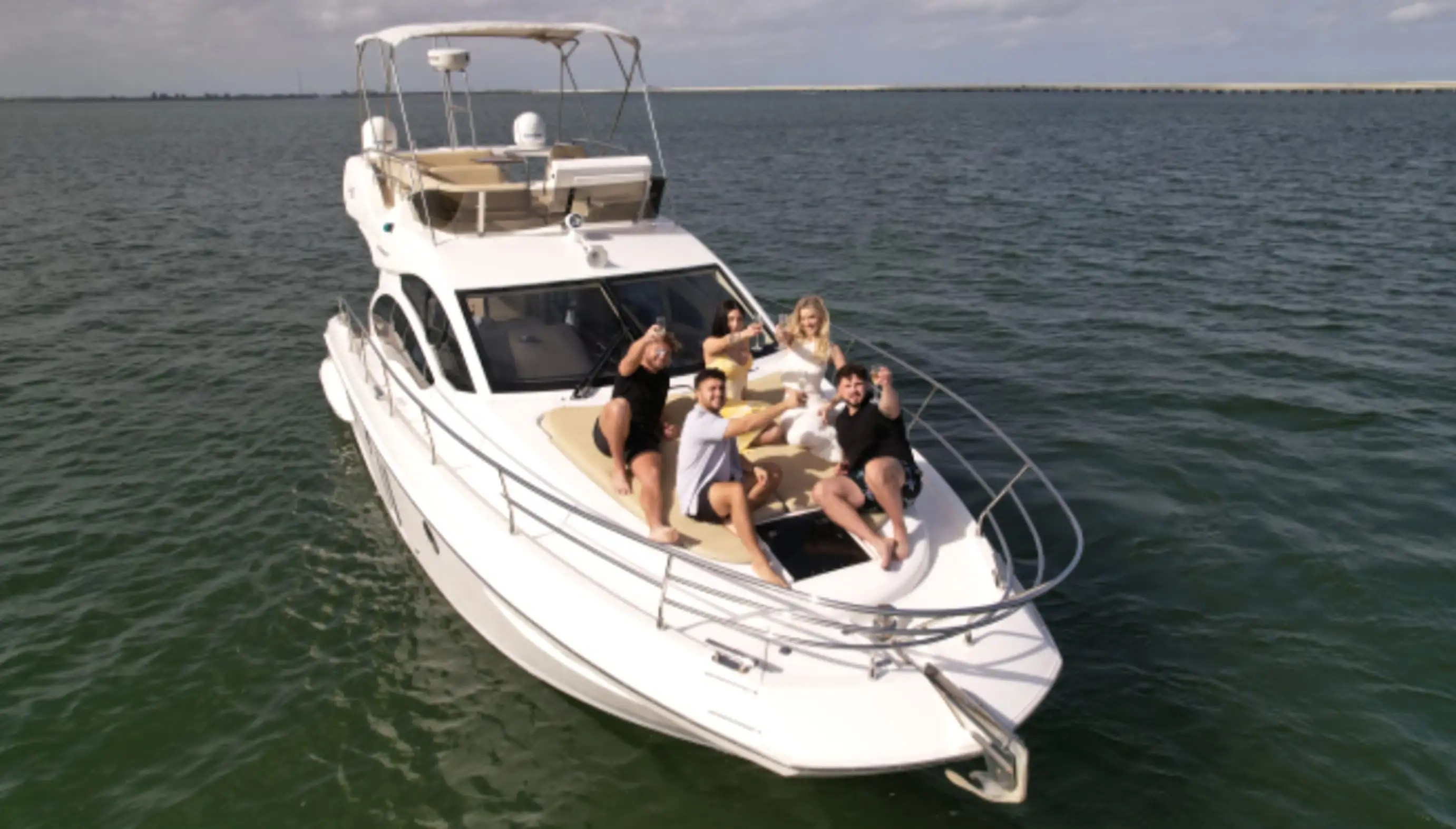 Cruise the Gulf Coast in style aboard this sleek 40′ Azimut boat rental, departing from the upscale Marina Pointe in Tampa. Perfect for family outings, romantic escapes, or fun with friends, this Tampa boat charter combines Italian design, smooth performance, and luxurious comfort. Explore the calm waters of Tampa Bay, visit nearby sandbars, or enjoy a champagne toast as the sun sets over the skyline. Availability is limited—book your private charter today to experience Tampa boating at its finest.