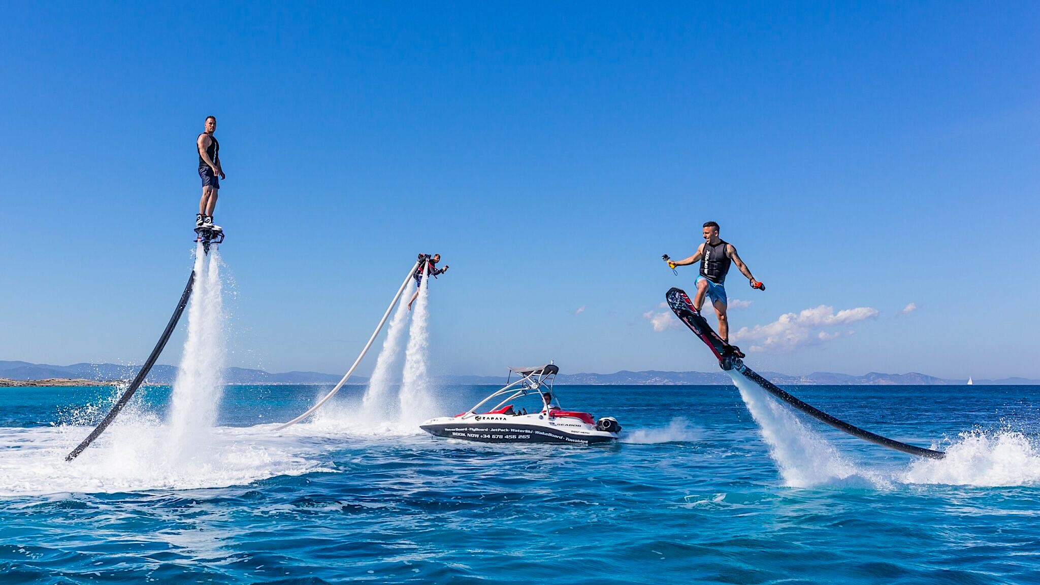 Get ready to fly high! Once you’ve booked a Flyboard water toy rental, we’ll immediately contact you to make sure all your special requirements are met. The Extra Water Toys will be delivered by an affiliate company, on the day of your yacht charter or private boat trip. We will bring all the gear for all ages of your guests and two instructors will be helping you out to make the most of your time on board. As a rule of thumb, Flyboards will be delivered once the yacht is anchored. We can fly 5-6 people an hour and require a 2-hour minimum for our charter times. This helps to ensure each guest has ample time to experience the thrill and excitement of Flyboarding!